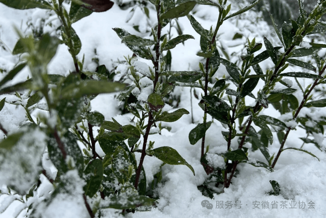 降雪期间或雪后应及时清除设施棚面及遮盖物上的积雪,防止拱棚垮塌。对于大雪覆盖的茶园也应及时清理,避免积雪过厚压断枝条或融雪结冰加重冻害。春季茶芽萌发后如遇降雪,雪停后应及时清理树冠积雪,防止融雪冻伤茶芽。此外,针对冻雨形成的冰凌,应待气温回升后任其自然脱落或轻轻震动处理,切忌强行敲打造成二次损伤。