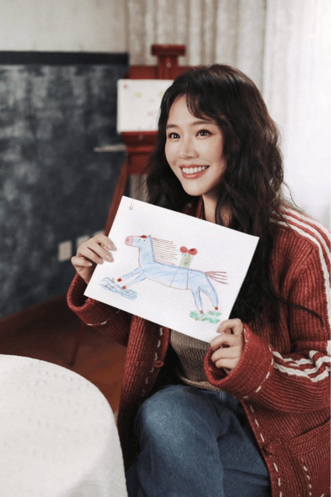 “灵感二次方”是喜茶于2025年推出的、与各领域灵感好友碰撞灵感,共同展开探索的全新栏目。作为知名演员,马思纯不仅名字里住着马,经常用“小马”自称,她自在、豁达的生活态度也如其姓名,总能唤起人关于“马”这一意象的美好联想。此外,马思纯喜欢创作,也在进行画画的尝试。在与喜茶的合作中,她用简单的笔触与温暖的色彩,勾勒出一匹奔跑中的马。马思纯这样介绍自己画的小马,“马的身体流动着淡淡的,像水一样自由的蓝色,它从无垠的草地走来,正奔向更广阔的海洋,马背上的礼物,系着我最喜欢的蝴蝶结,里面装满了所有美好的祝福。”