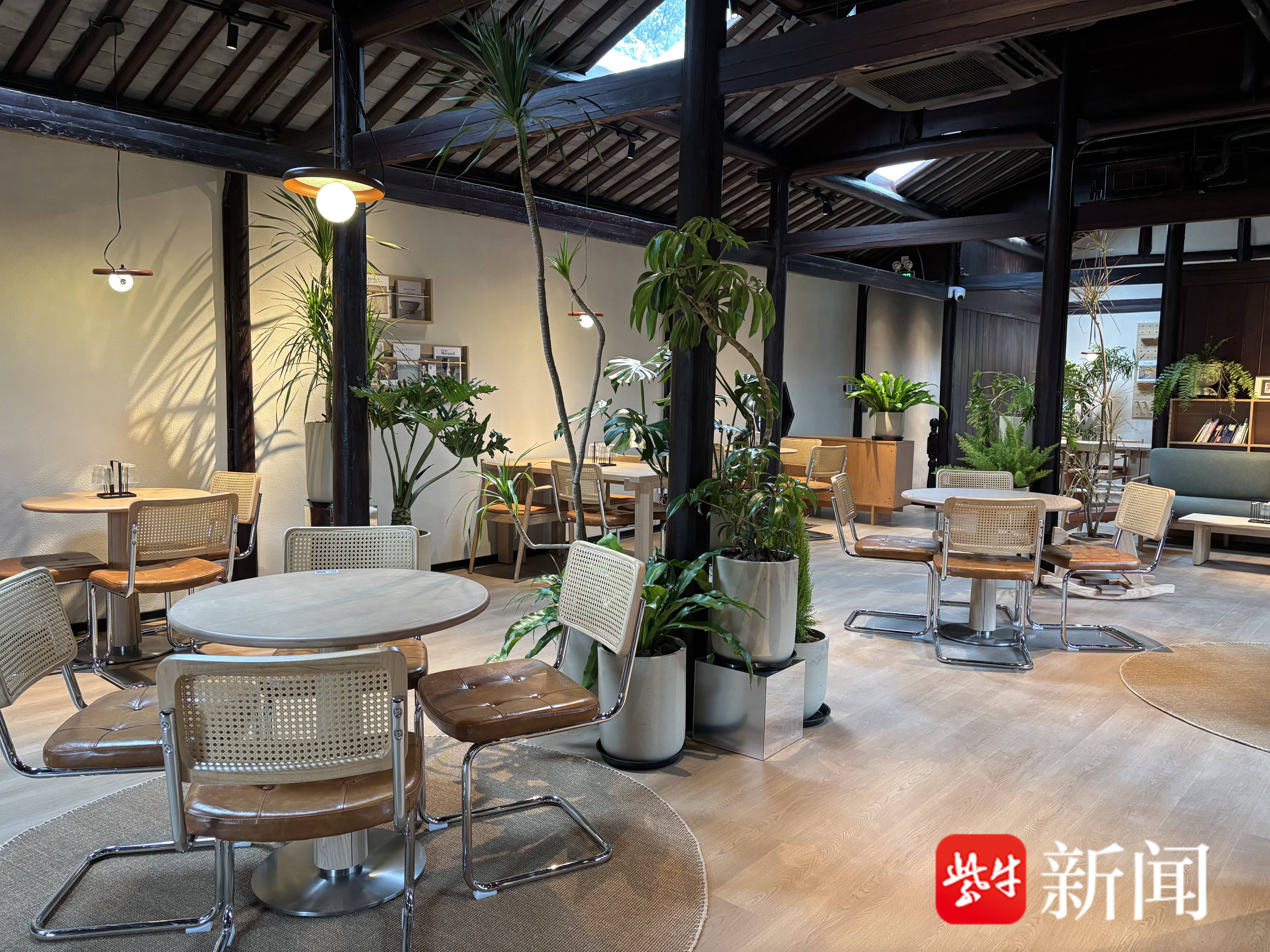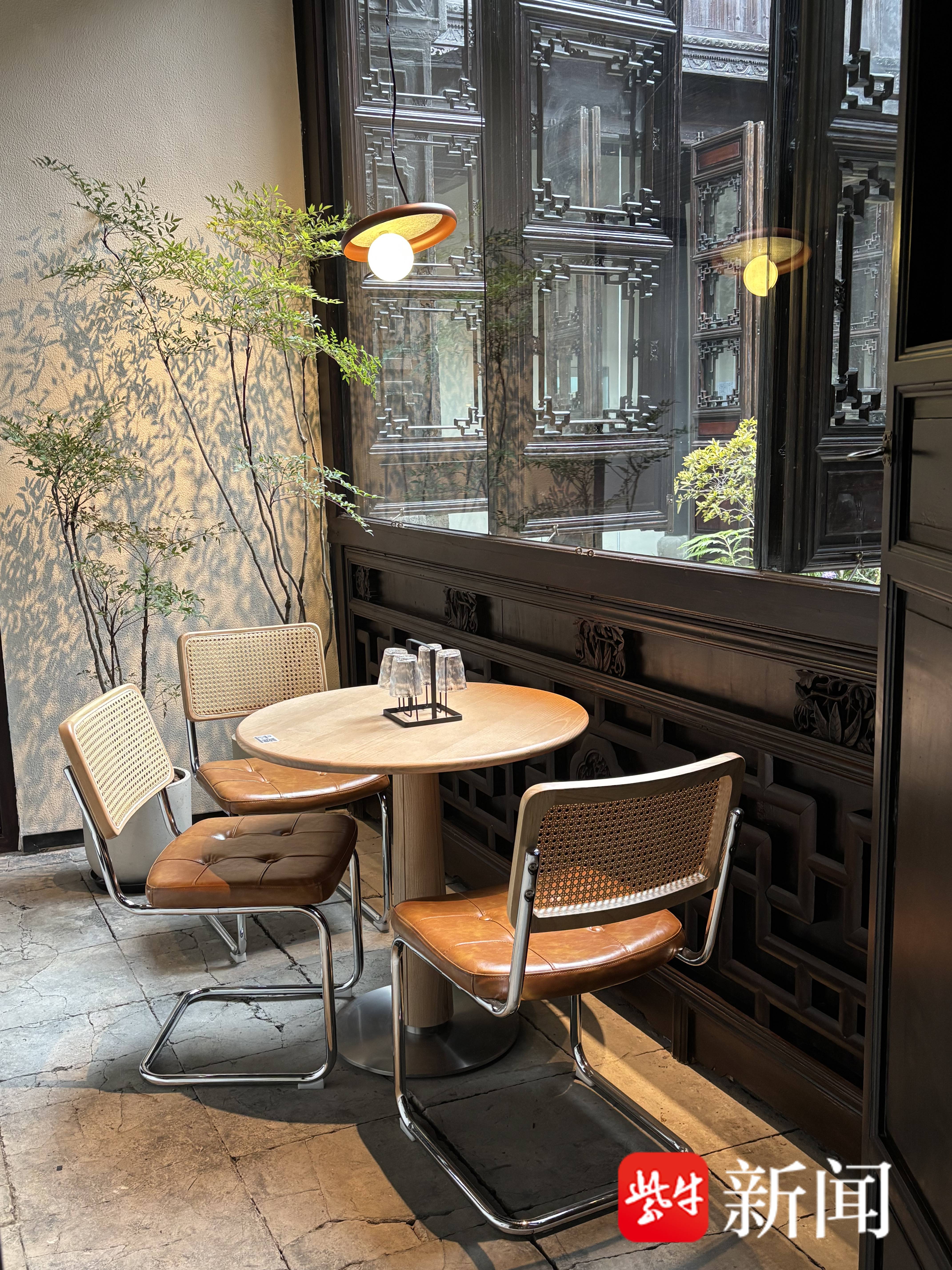 作为枕卧頔塘河畔的民国古建,麟角坊曾见证了震泽商埠的繁华。如今,在古建恢复者的精心雕琢下,麟角坊褪去斑驳外衣,重新焕发生机。步入店内,传统木结构与当代设计相得益彰,古老梁柱与现代灯光交相辉映。同时,巧妙运用“借景”手法,将頔塘河的波光、慈云寺塔的远影乃至四季更迭的柳色,都纳为宅院流动的画卷。