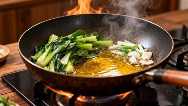 绿叶蔬菜如菜心、菠菜、空心菜,讲究“断生即出”,火候稍过便软烂发黄。用山茶油快炒,因其高烟点可迅速升温,使蔬菜表面快速受热锁住水分,保持脆嫩口感;同时油体清澈,不会使菜色发暗。实验对比显示,用山茶油炒的菜心,叶绿素保留率比大豆油高12%,颜色更翠绿。