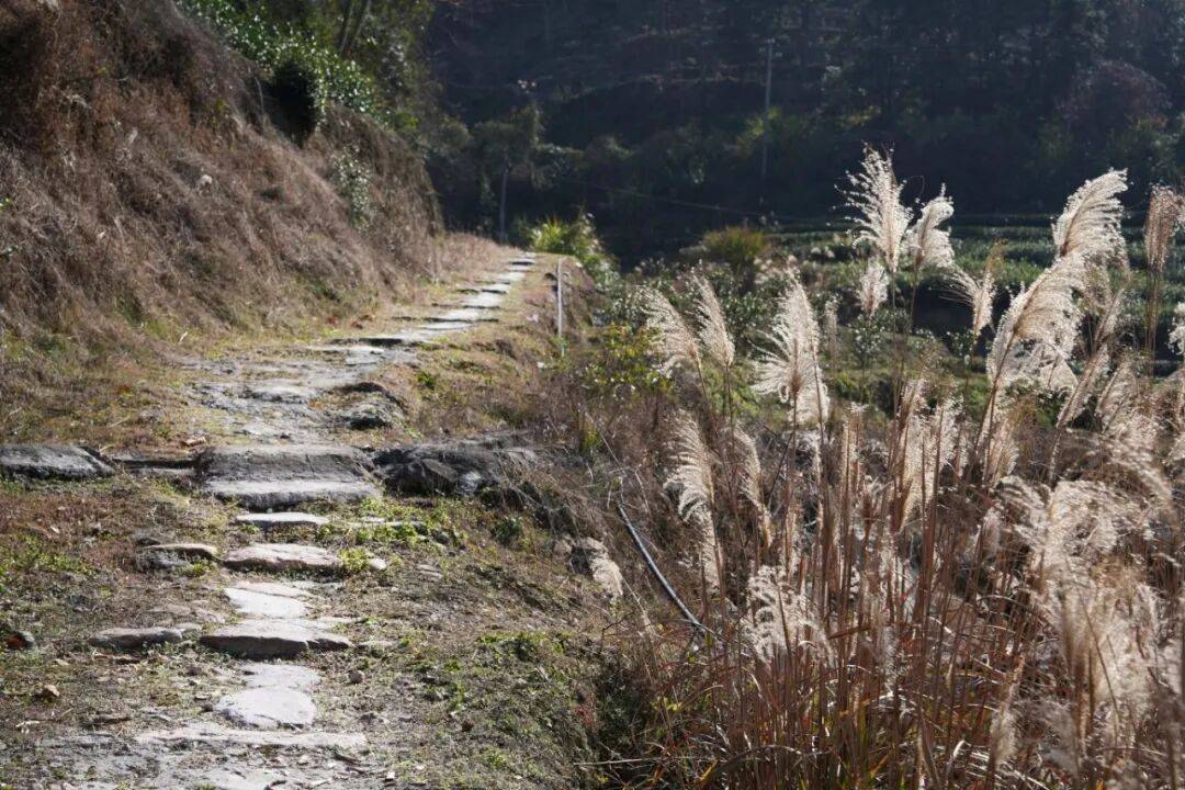当我再次踏上石马岭古道,已是甲辰年仲秋一个天气晴朗的午后。田野上的稻谷已经收割完毕,采过白露茶后的茶园依然苍翠。起点为柏柳村横溪桥,一条飘荡了近千年茶香的石马岭古道犹如一道人间彩虹,横亘在大山之中。此刻,古道上除了我们几个探访者,看不见其他行人。千百年来,数不清有多少人从这条古道上走过,他们是赴任的官员,是赶考的学子,是肩挑茶叶、手提山货的商贩……