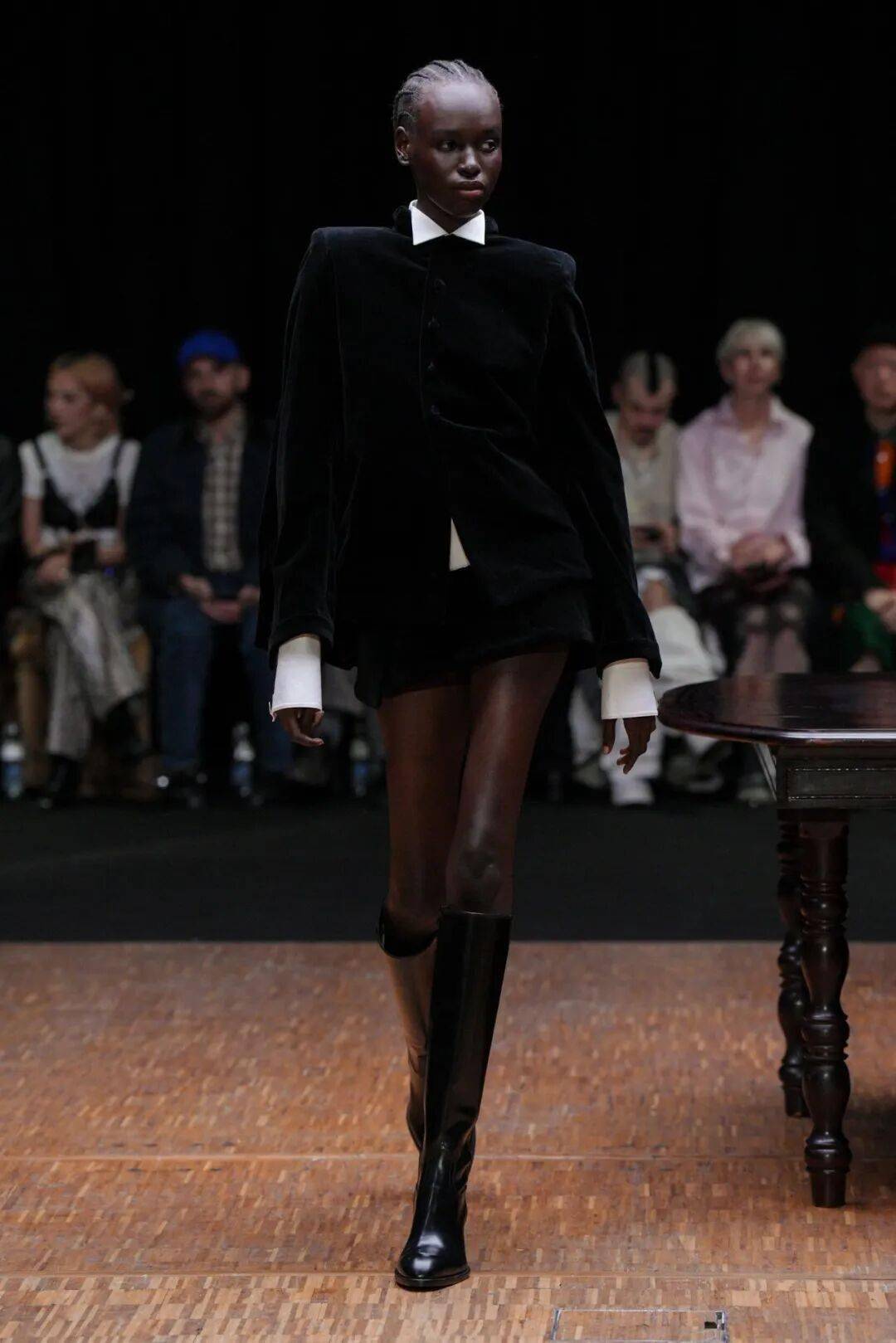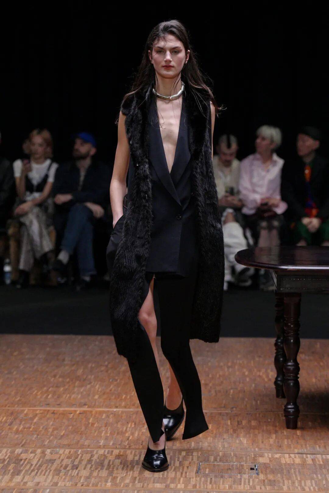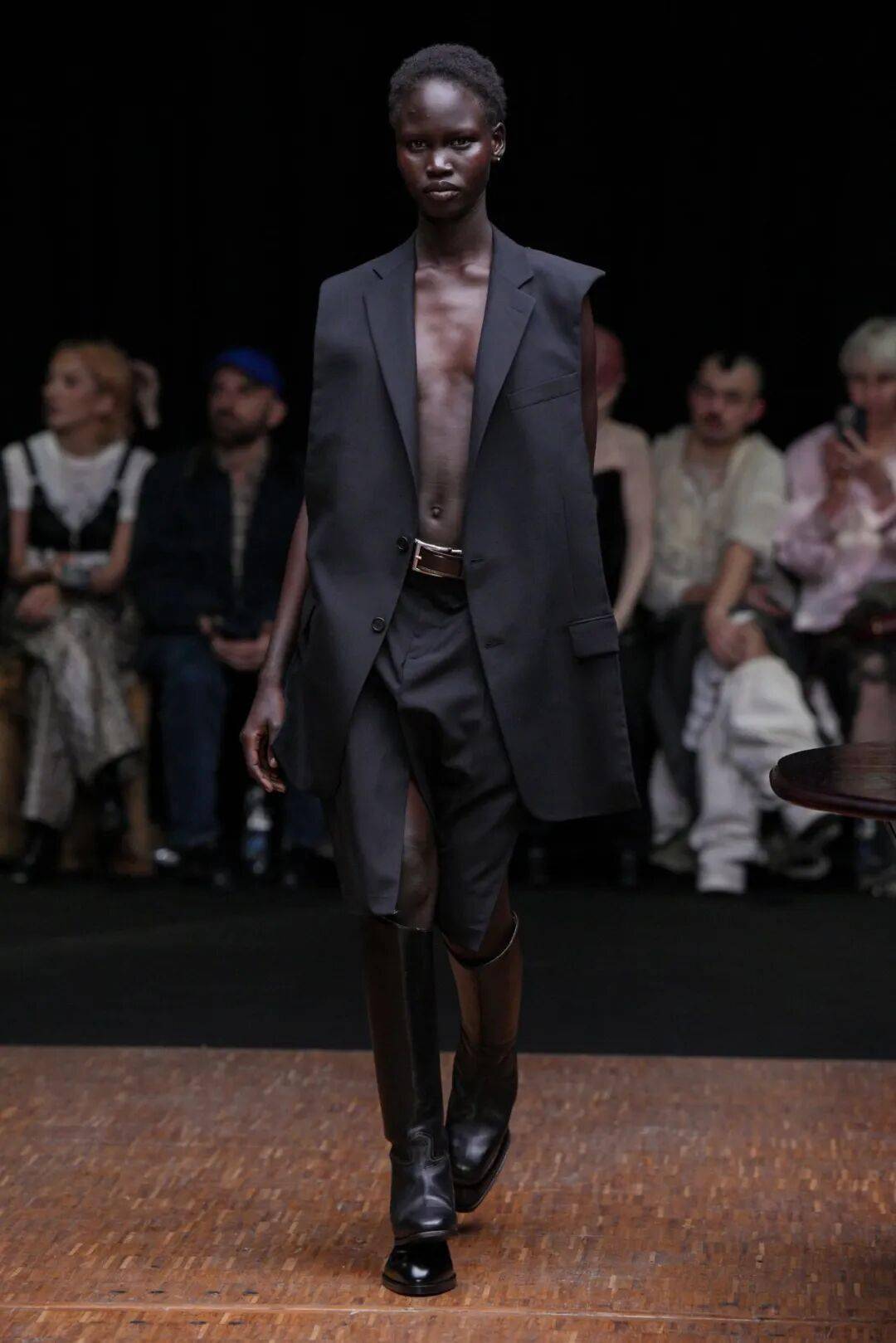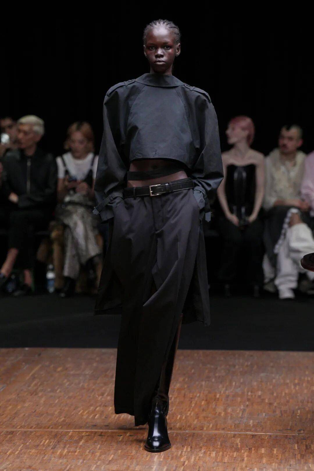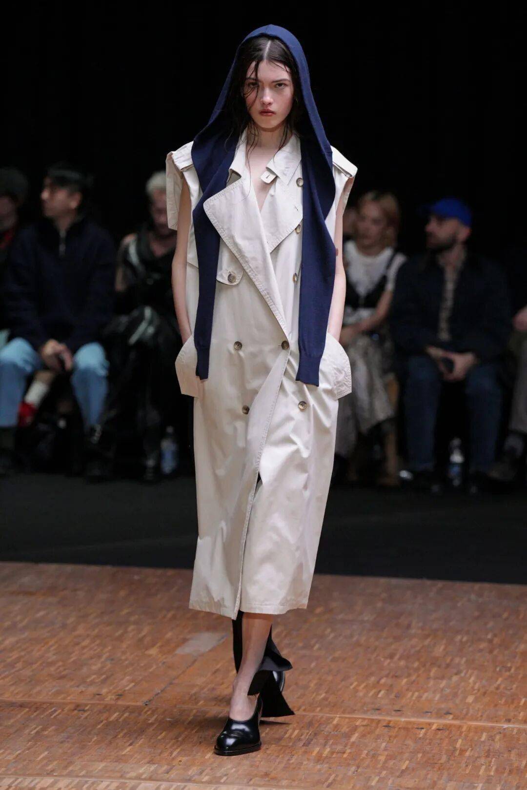 核心反差,正面严肃,背面“破防”秀场造型的最大亮点,是极致的前后反差。