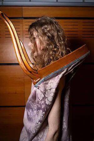 拉尔松以相似逻辑挖掘现成物(found objects):经重新语境化(reframing)与功能转译(repurposing),赋予其新的服饰学意义。那些蜿蜒攀附躯干、于颈间交汇的丝质细带,并非金发样本,而是小提琴马尾弓弦(horsehair strings)——这一巧思呼应其美学关键词:“一位汗涔涔的钢琴家”。她构想这位音乐家盛装登台,在演奏中彻底忘我;而“本真自我”,正如她所言,“正诞生于这些行动之中”。