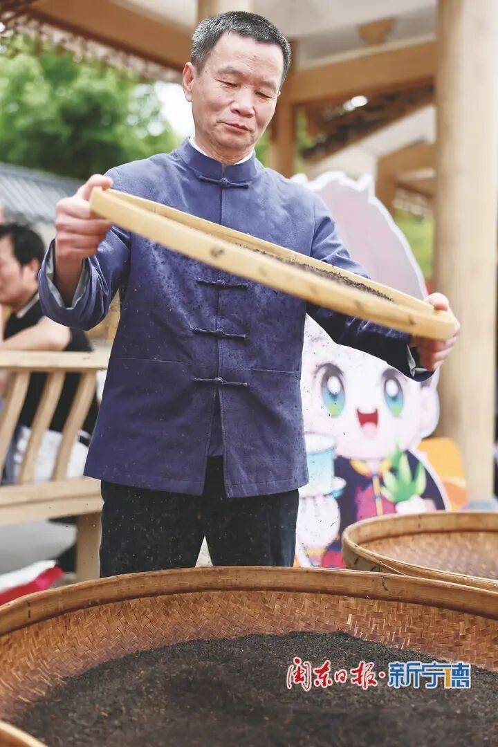 非物质文化遗产坦洋工夫茶制作技艺国家级代表性传承人林鸿在展示坦洋工夫茶制作技艺
