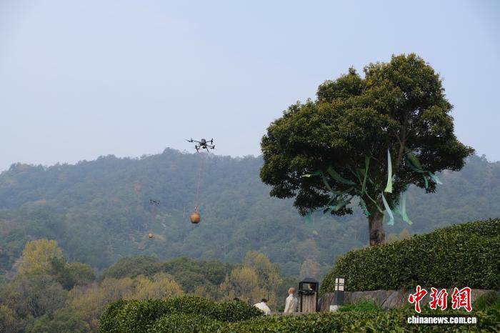 开茶仪式现场,无人机编队从各茶山同步起飞,成为一道别样的风景。浙江省非遗工坊(西湖龙井)负责人戚英杰介绍道,无人机技术的应用显著提升了茶叶生产效率,“过去,用骡子运送一包肥料上山需要50元,现在采用无人机吊装,12元到13元就能完成,而且速度快,经济价值非常明显”。