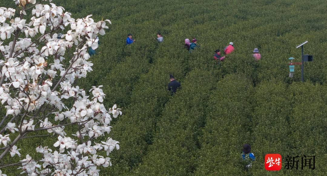 在位于江苏句容的江苏茶博园里,放眼望去,一行行茶树整齐排列,嫩绿的新芽缀满枝头,处处透着勃勃生机。几十名采茶工背着竹篓穿梭于茶垄之间,指尖翻飞间,一颗颗饱满的芽头被轻轻摘下,拉开了今年春茶采摘的帷幕。江苏茗苑现代农业科技有限公司茶叶采摘负责人王爱根告诉记者:“我们今天开始采摘,目前是安排了四十多个人,采的是乌牛早品种,有40多亩。