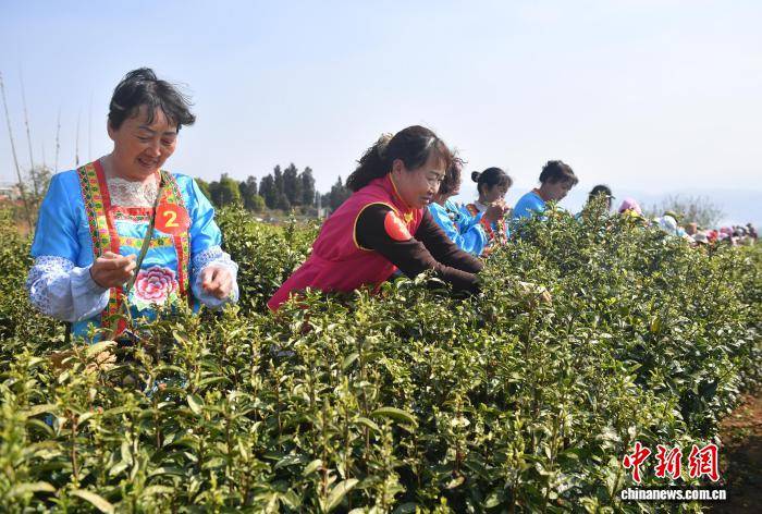 3月21日,当地民众和游客进行采茶大赛。中新社记者 黄兴鸿 摄