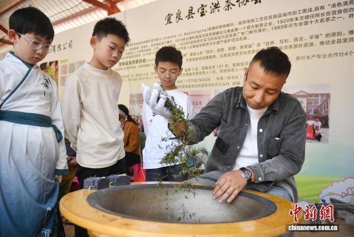 3月21日,三名男孩观看炒茶。中新社记者 黄兴鸿 摄