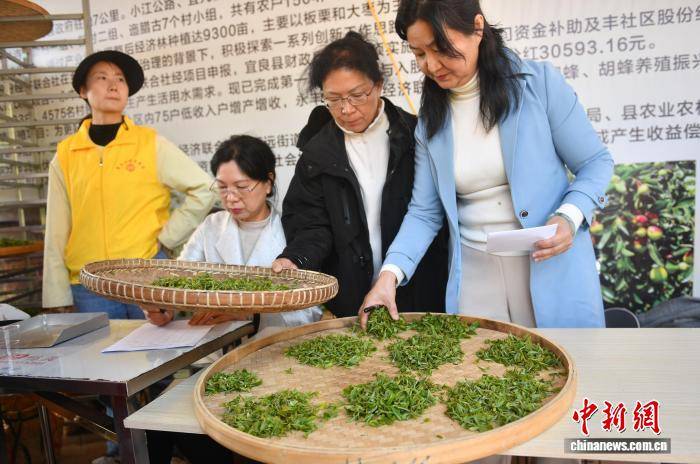 3月21日,评委为采摘的茶叶评分。中新社记者 黄兴鸿 摄