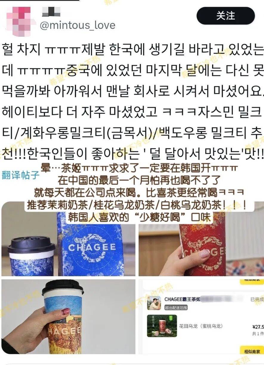 在韩国的社交媒体上,输入霸王茶姬,出来的帖子画风是这样的: