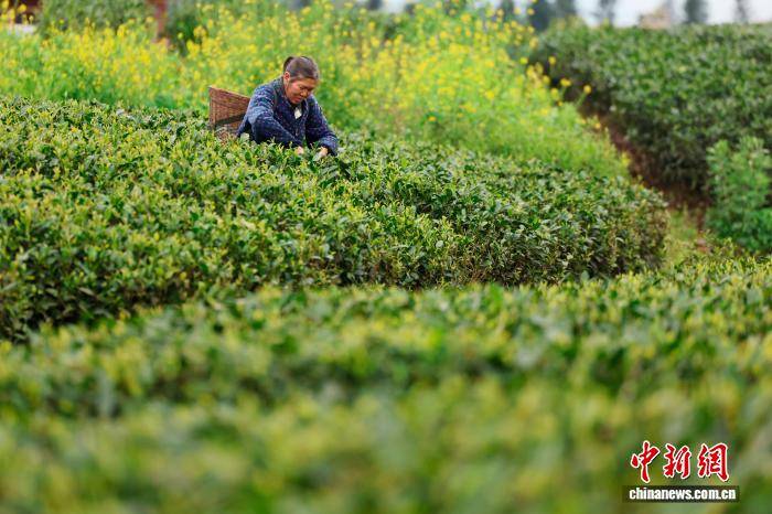 4月1日,四川省雅安市名山区茶农在田间采茶。临近清明节,当地的明前茶迎来采摘、购销旺季。中新社记者 张浪 摄