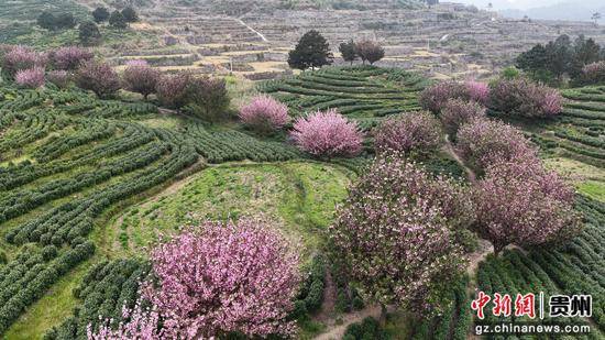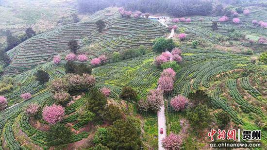 近日,独山县百泉镇朵罗村1800亩茶园间,错落种植的樱花迎来盛花期,粉白相间的花影缀满茶垄,与翠绿的茶叶相映成趣,铺就出一幅春日限定的田园画卷。