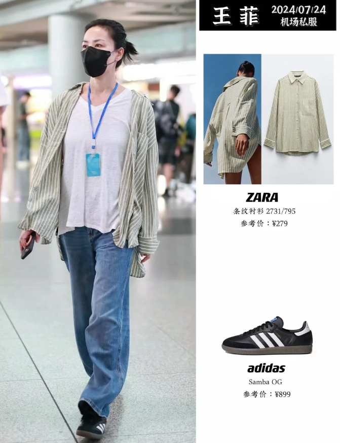 王菲一向随性,这次不仅在穿搭上随性,连妆都不化了,直接戴个口罩就出门了。