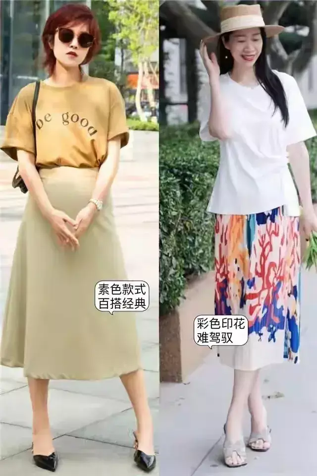不过选择的衣服颜色尽量不花哨,例如下面用彩色系的印花半身裙搭配上白色的短袖上衣,一般普通人也很难驾驭。正确的来说,应该选择素色款式更百搭经典,怎么穿都很好看。