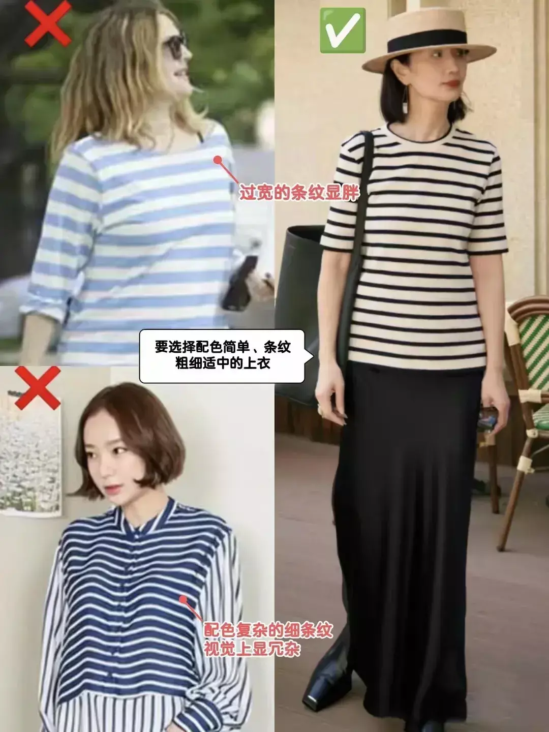 年龄不同,选择的衣服自然也是不同的,如果是四五十岁的话,可以用基础的黑白色调条纹短袖上衣搭配上黑色的半身裙,这样的穿衣风格更大气,也符合这个年龄段更优雅大方。