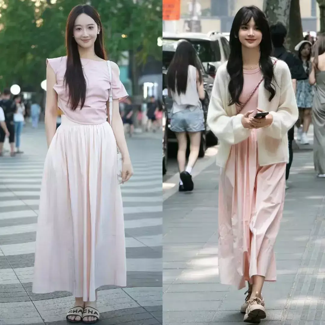 粉色的上衣或者是粉色的裙子确实很不错,因为很修饰肤色,下面这两套就能穿出不一样的少女感,谁能拒绝的了粉色的衣服款式呢?