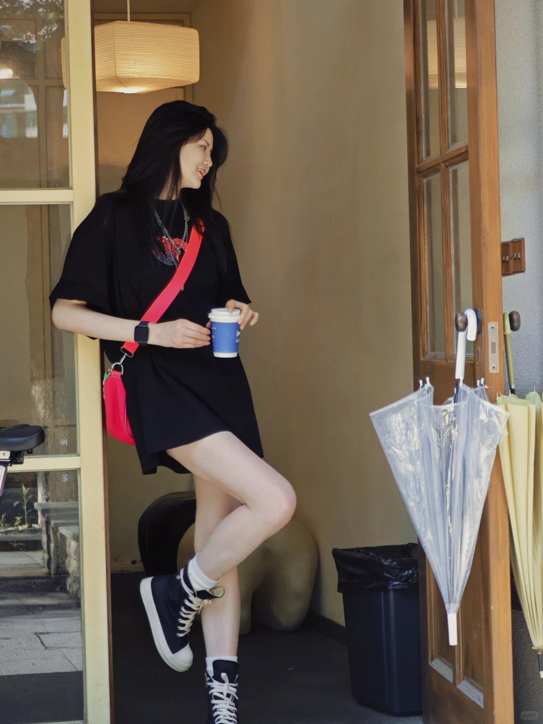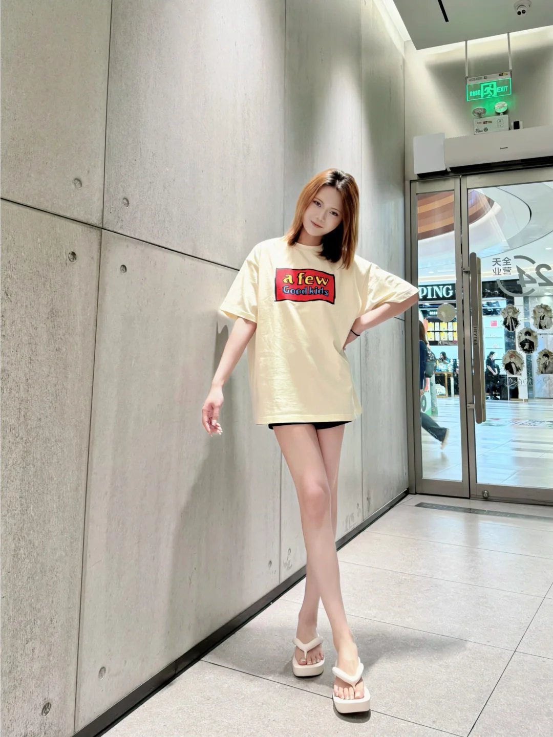 案例一:宽松长T恤+超短裤