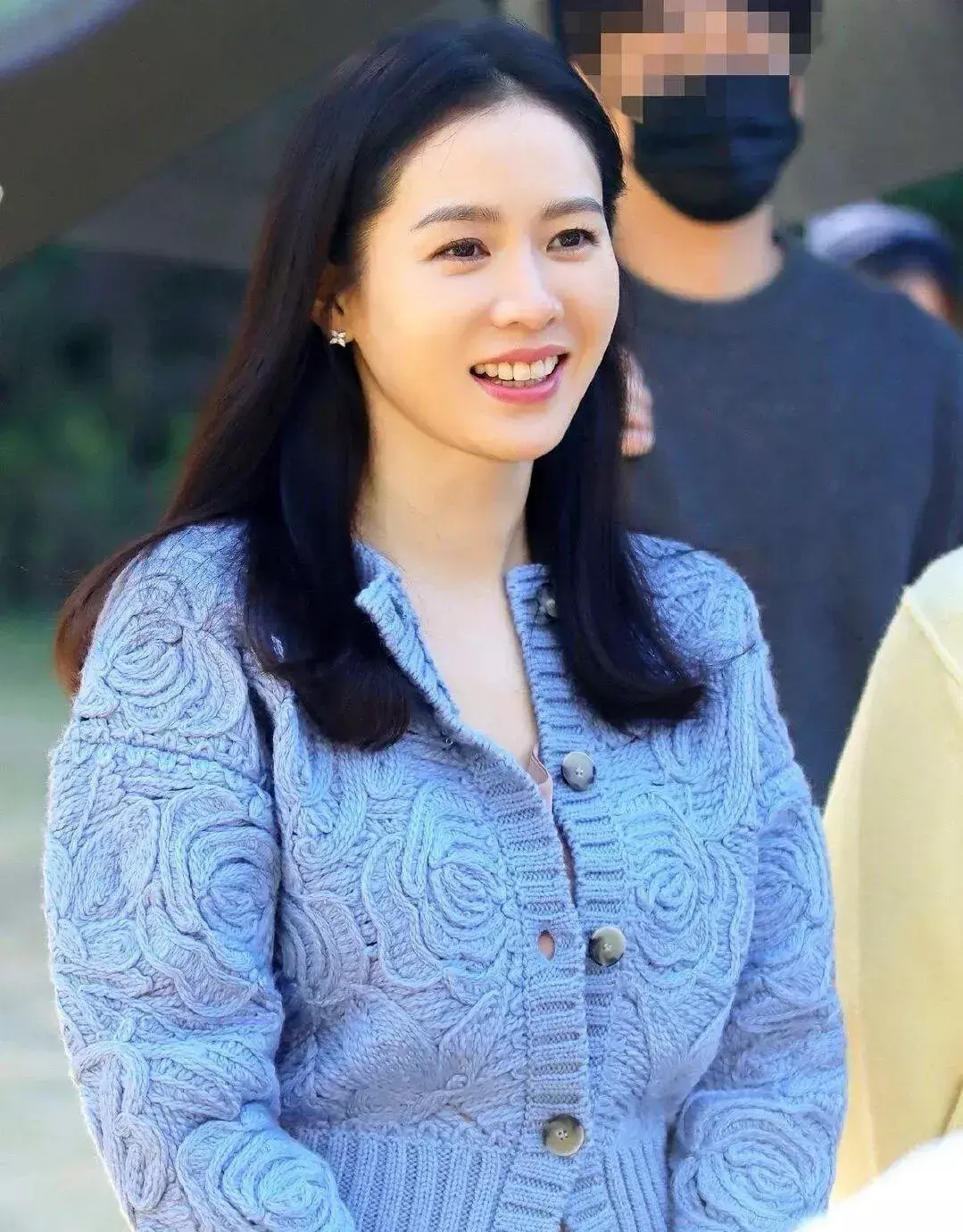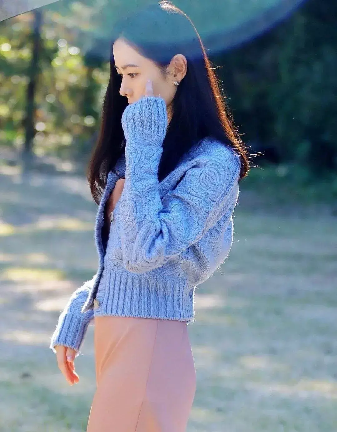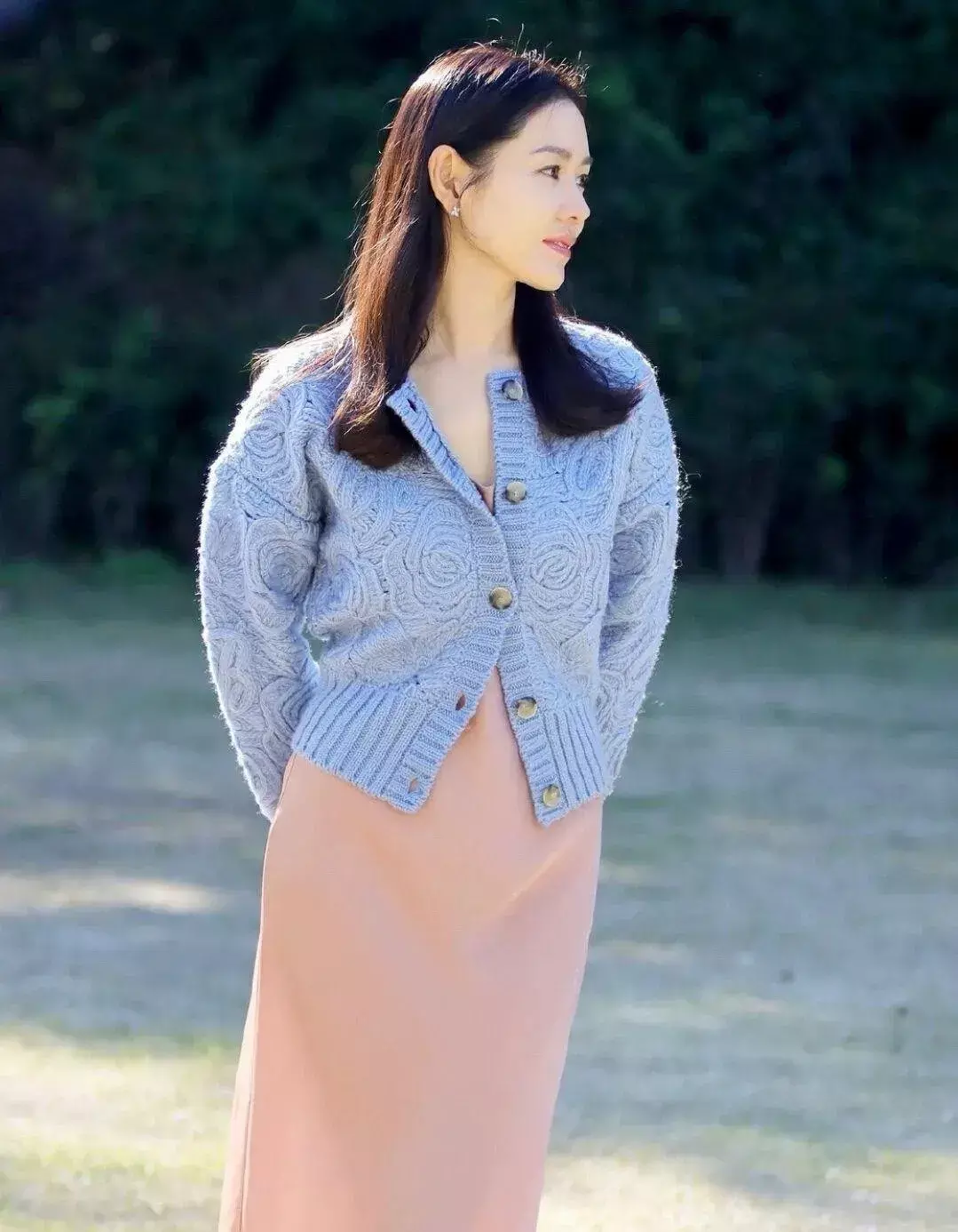 蓝色,自古以来便是宁静与深邃的象征。孙艺珍选择的蓝色针织开衫,以其柔和的色调和细腻的质感,仿佛晨曦中轻拂水面的微风,带着一丝不易察觉的凉意与清新。针织材质特有的温暖触感,与蓝色的冷静相互交织,形成了一种既温柔又坚韧的独特魅力。这样的蓝色开衫,不仅能够很好地衬托出穿着者的肤色,更在不经意间流露出一种知性温婉的气质,让人感受到一种远离尘嚣的宁静之美。