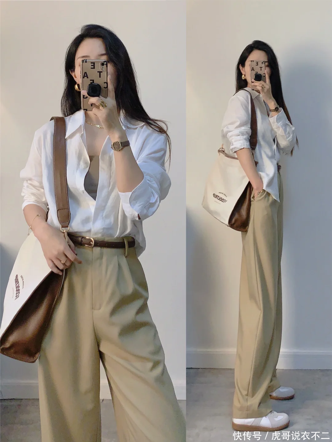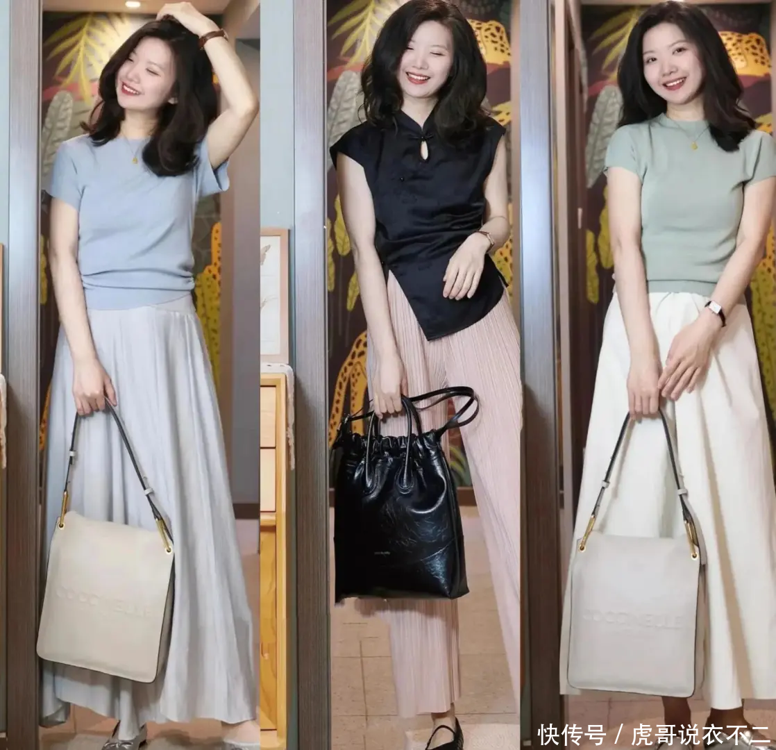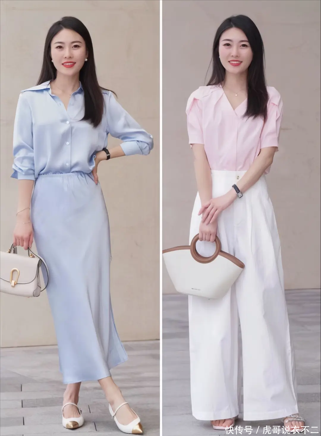 穿搭案例:一条高腰设计的真丝阔腿裤,搭配一件同色系但质地略有不同的棉质上衣,通过材质的对比营造出层次感,既保留了夏日的清凉,又彰显了不凡的品味。
