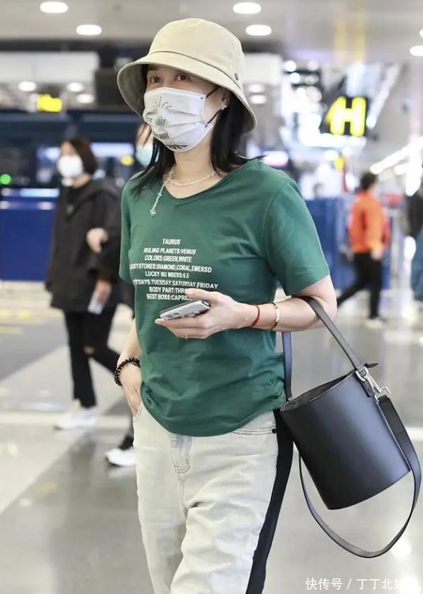 那英的穿搭看上去很年轻,但她从不让人反感,因为她一点不做作,这和她本人性格十分相似,那英的减龄都是明面上肉眼可见的,她绿色的修身小上衣T恤代替繁琐的衣服,用纯棉面料代替了雪纺面料,简洁洋气。且这种绿色是非常显白的,胸前的字母也很有美式辣妹感。