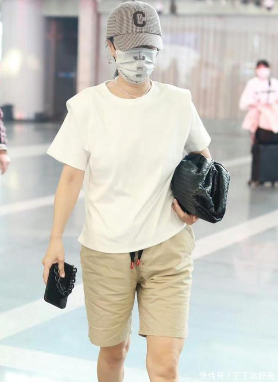 从那英日常私服中可以看出,那英的审美并不浮夸,而是选择有质感的基础款单品和融入设计元素的基础单品。比如这件修身但是却不紧身的短t,就是很基础的款式,落肩的设计让那英看起来纤细高挑了很多,版型虽然不出挑,但是对于身材的包容性却非常高。
