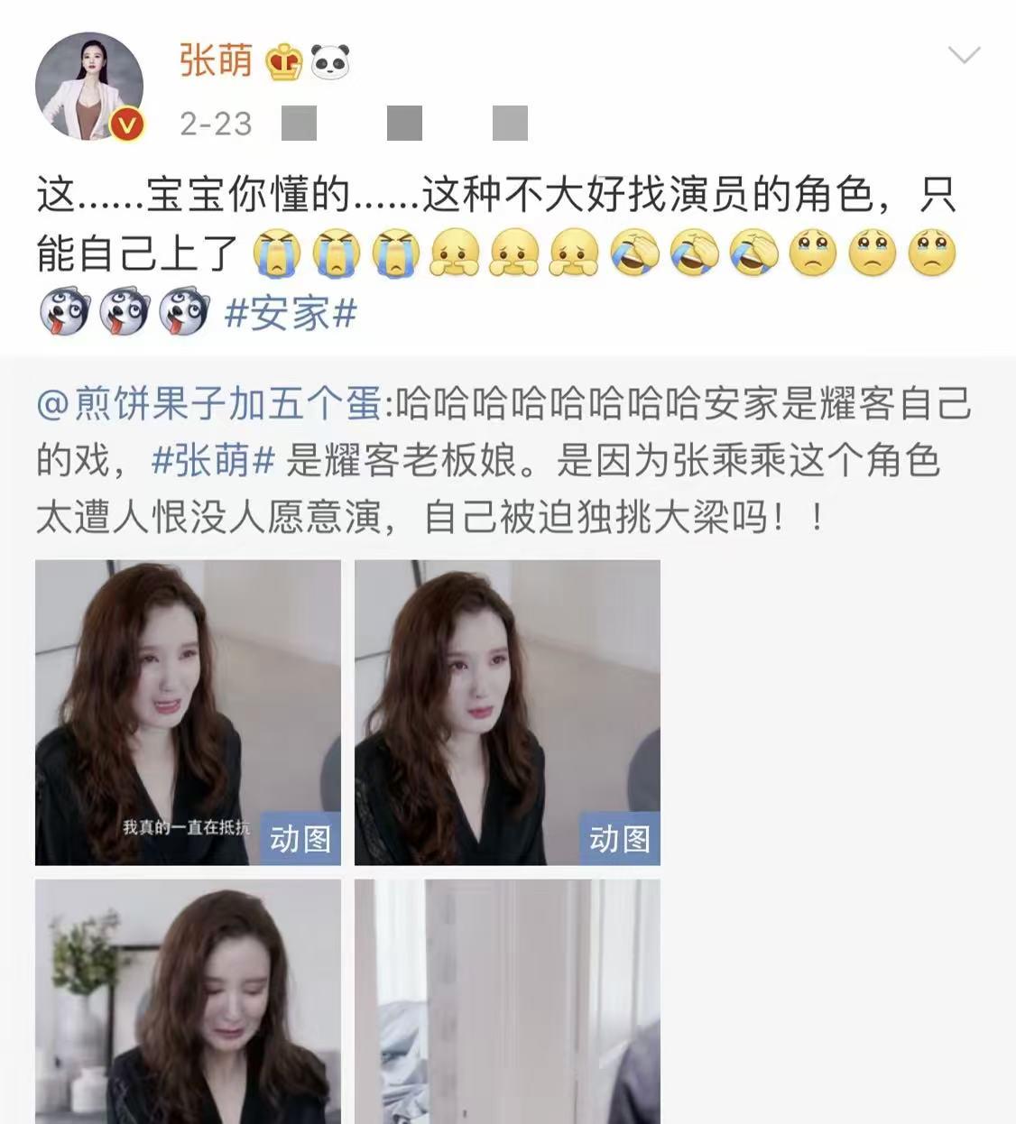 张萌作为耀客传媒的老板娘,已经不是第一次为自家的剧出演恶毒女配角了。