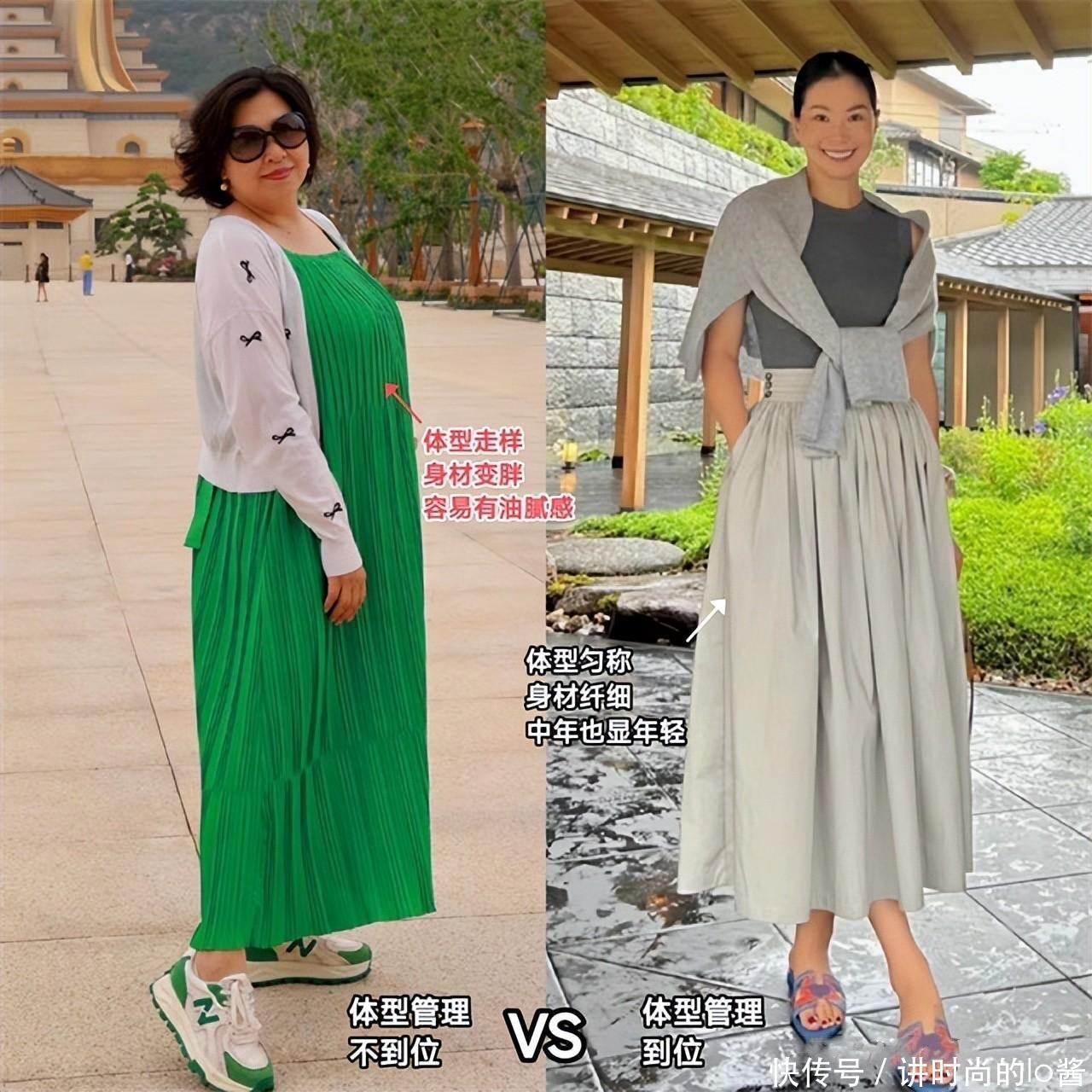 当你的体型开始走样,身材逐渐变胖的时候,就会慢慢的有油腻感。大龄女人不管理自己的体型,最终在穿搭上也会加难度,很多衣服都穿不出年轻时想要的效果;体型管理到位的女人,身形线条匀称纤细,就算到了中年也显年轻。