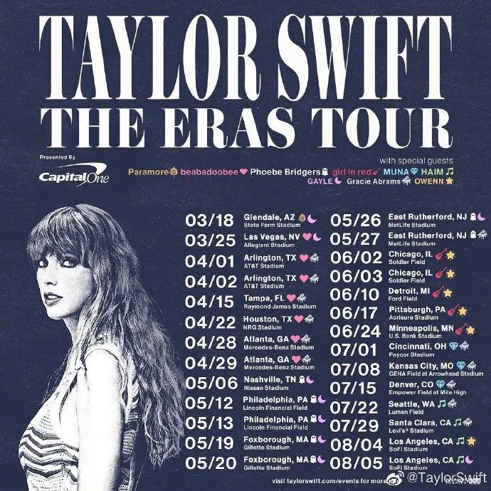 本轮巡演于 2023 年 3 月 17 日启航,至今已持续了长达一年半的时间!在此期间,Taylor 先后到访了:北美洲、拉美洲、南美洲、亚洲、澳洲、欧洲等地。