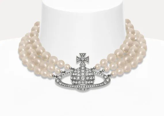 她也搭配过白色的土星项链,是由三层珍珠层叠穿制,中心是水晶镶嵌而成的土星图案。