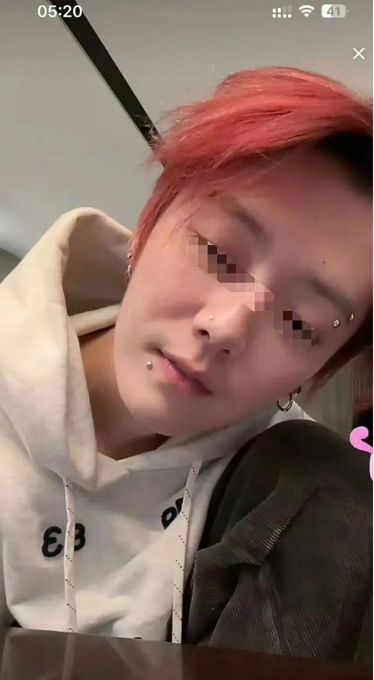 当晚直播的他,顶着一头红发,一只眼睛被遮挡,脸上贴满了金属钉。
