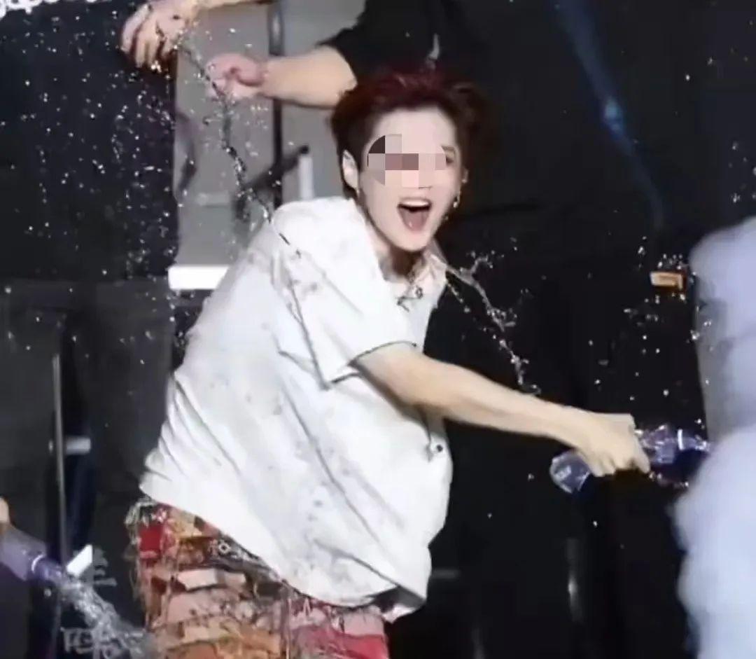 在唱到高潮时,与台下粉丝泼水互动。