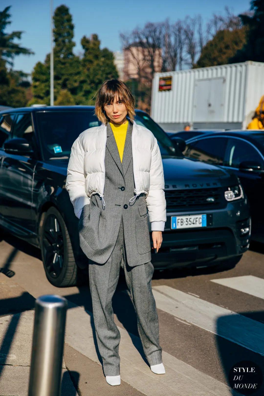 上身有肉:如果恰巧小个子比较丰满,要么选择箱型横向宽的短款西装,要么选择长款过臀西装,还能遮住一部分臀胯缺陷;同时,记得搭长西装,下身最好窄瘦一点,这样能把长款穿的利落潇洒。