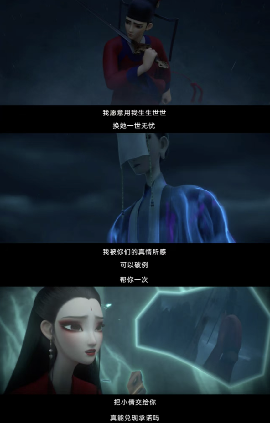 主观视角由从前的宁采臣为主变为小倩的女性叙事,增加了意识觉醒的女性主义,“前世今生,我的人生只能由我说了算,容不得他人来指手画脚”,反抗禁锢,追求自由。