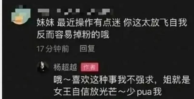 面对粉丝的关心,她认为是在 “pua” 她,并以 “姐就是女王自信放光芒” 回应。