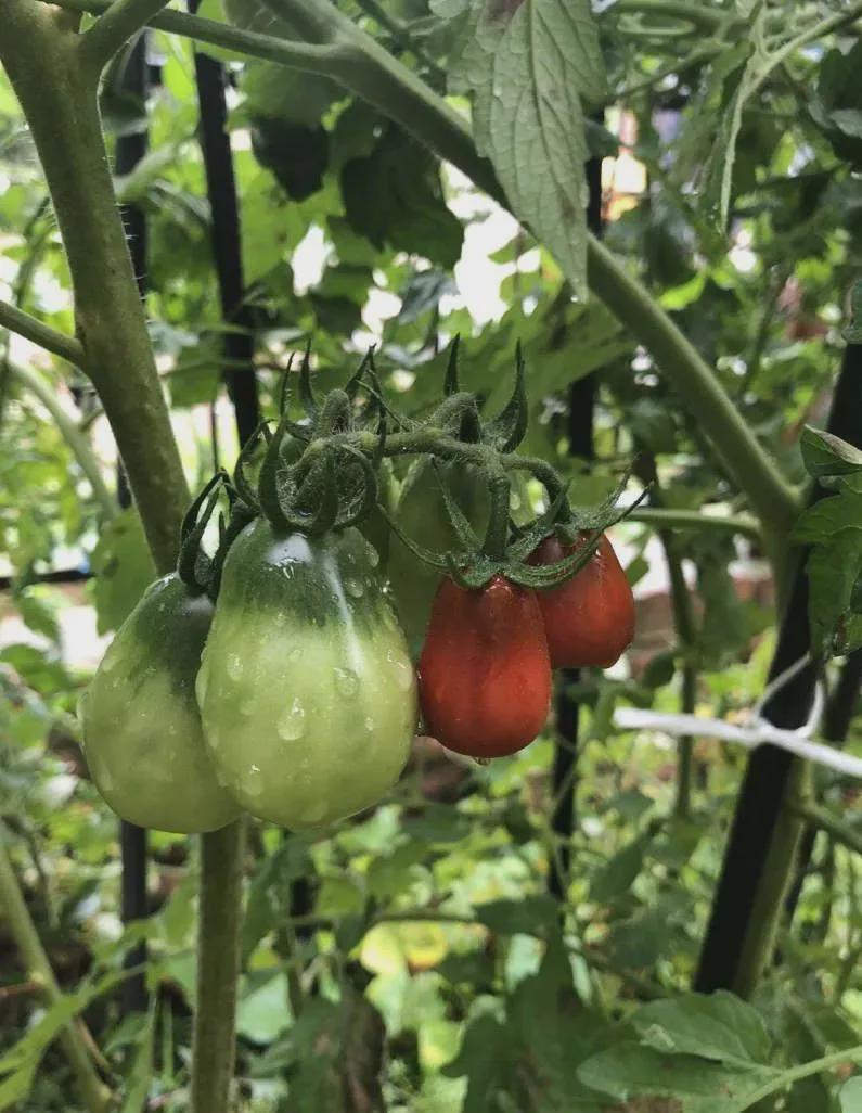 到了成熟期,叶绿素逐渐减少,番茄红素不断增加,越来越红,像元宵灯笼。