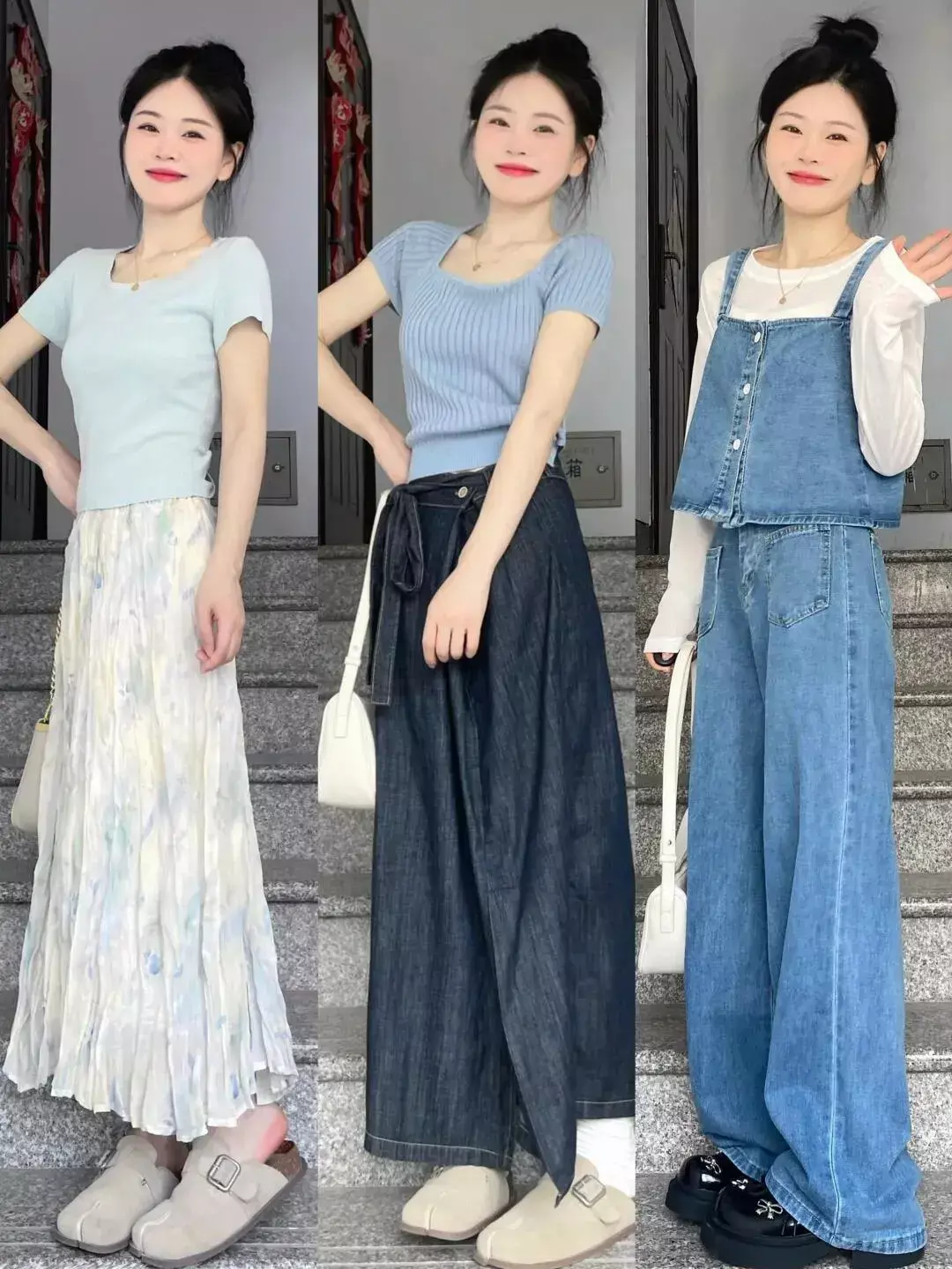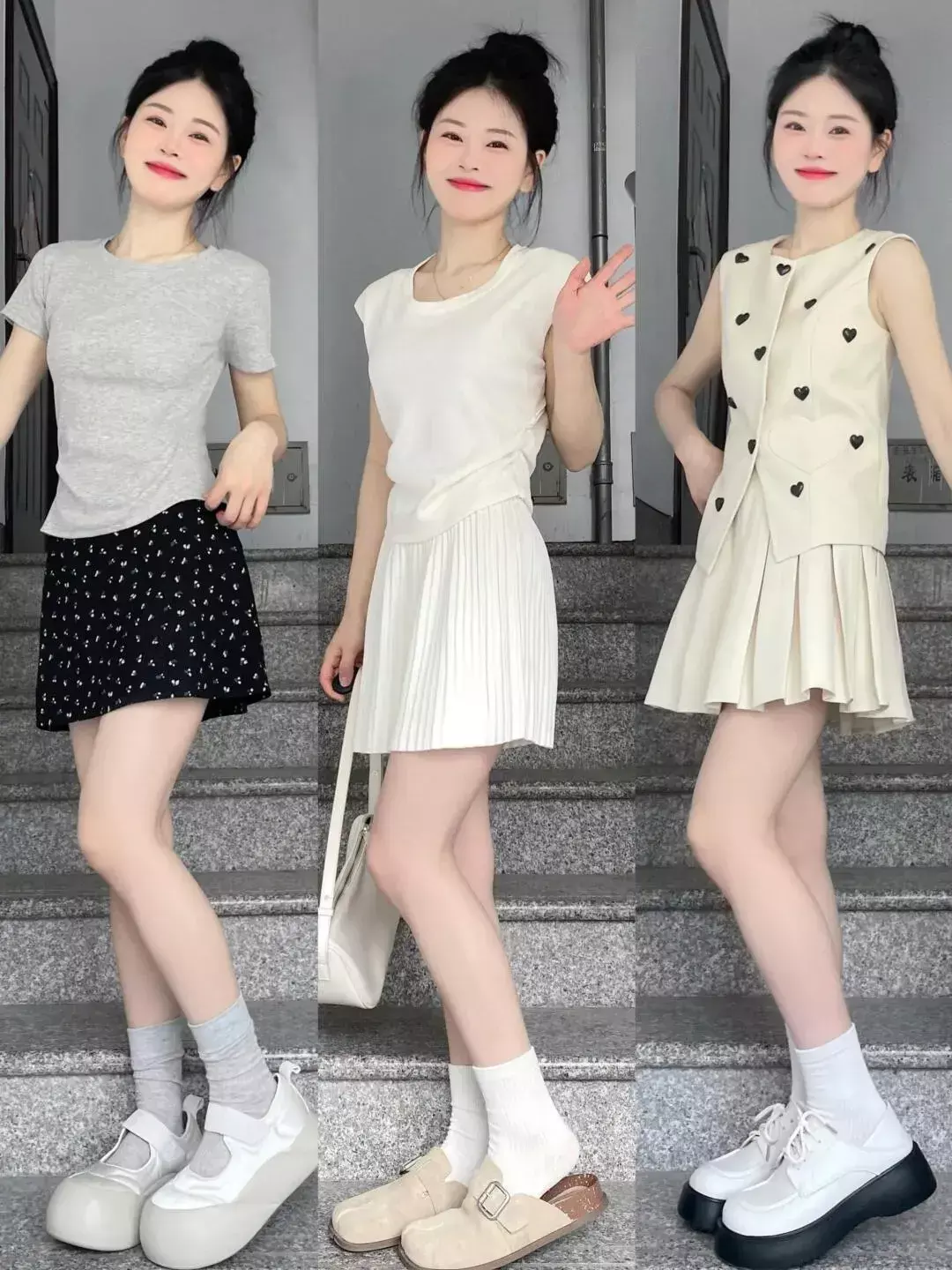而且在夏季的穿搭当中,各种短裙短裤也是非常受欢迎的展现,我们修长笔直的双腿线条,穿着体验更加的清凉,气质上更加的青春靓丽活泼减龄,无论是选择学院感十足的百褶短裙,还是选择牛仔半身裙,碎花半身裙,上半身也只需要一些简简单单的基础款单品,与之进行搭配就足够了。将视觉的重点放到我们的双腿上,尽情展现我们的气质魅力。