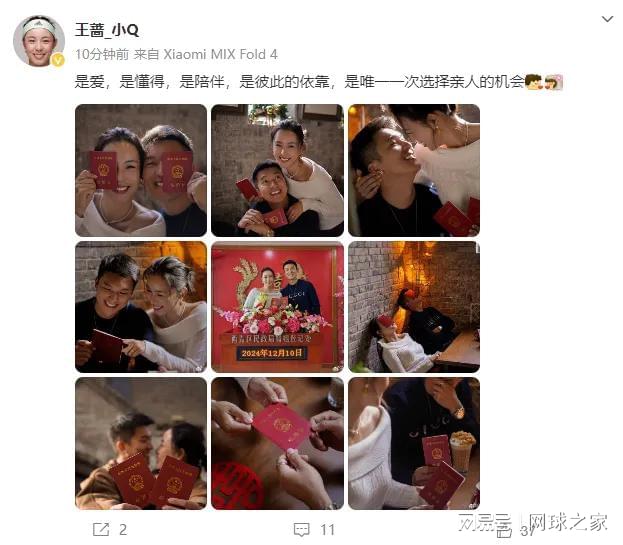 这段爱情在一年多之后,随着两人正式宣布领证成为合法夫妻划上了圆满的句号。以致有球迷和网友幽默地表示,这速度跟巅峰期赛场上的王蔷得分手段一样,效率相当高。当然也间接告诉所有人,王蔷找到了一生挚爱,不然晒出的多张结婚照,也不会处处透露着无尽的甜蜜,瞬间刷爆网络!