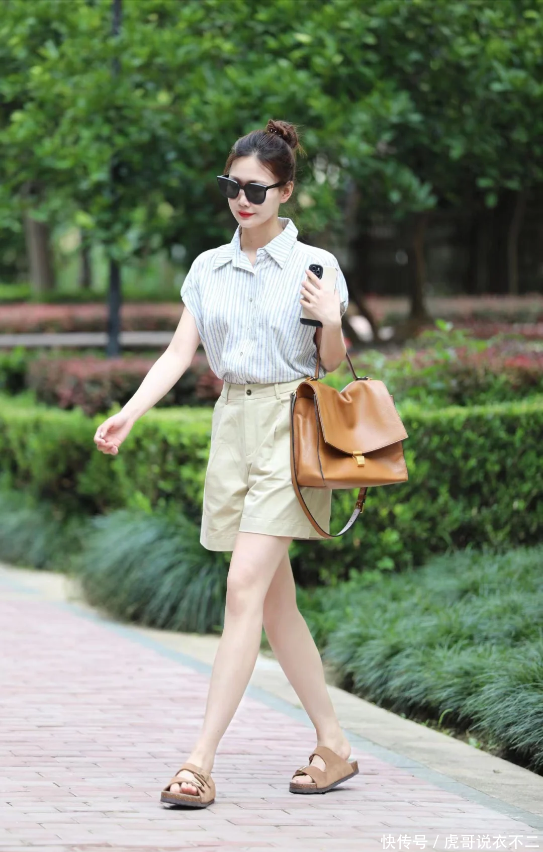 一双棕色皮质凉鞋或是简约的帆布鞋,都能与卡其色短裤相得益彰。此外,一款小巧的皮质腰带,不仅能够优化身材比例,还能为整体造型增添一抹亮点。别忘了,一个简约的帆布包或是皮质手提包,都是夏日出行的理想伴侣。