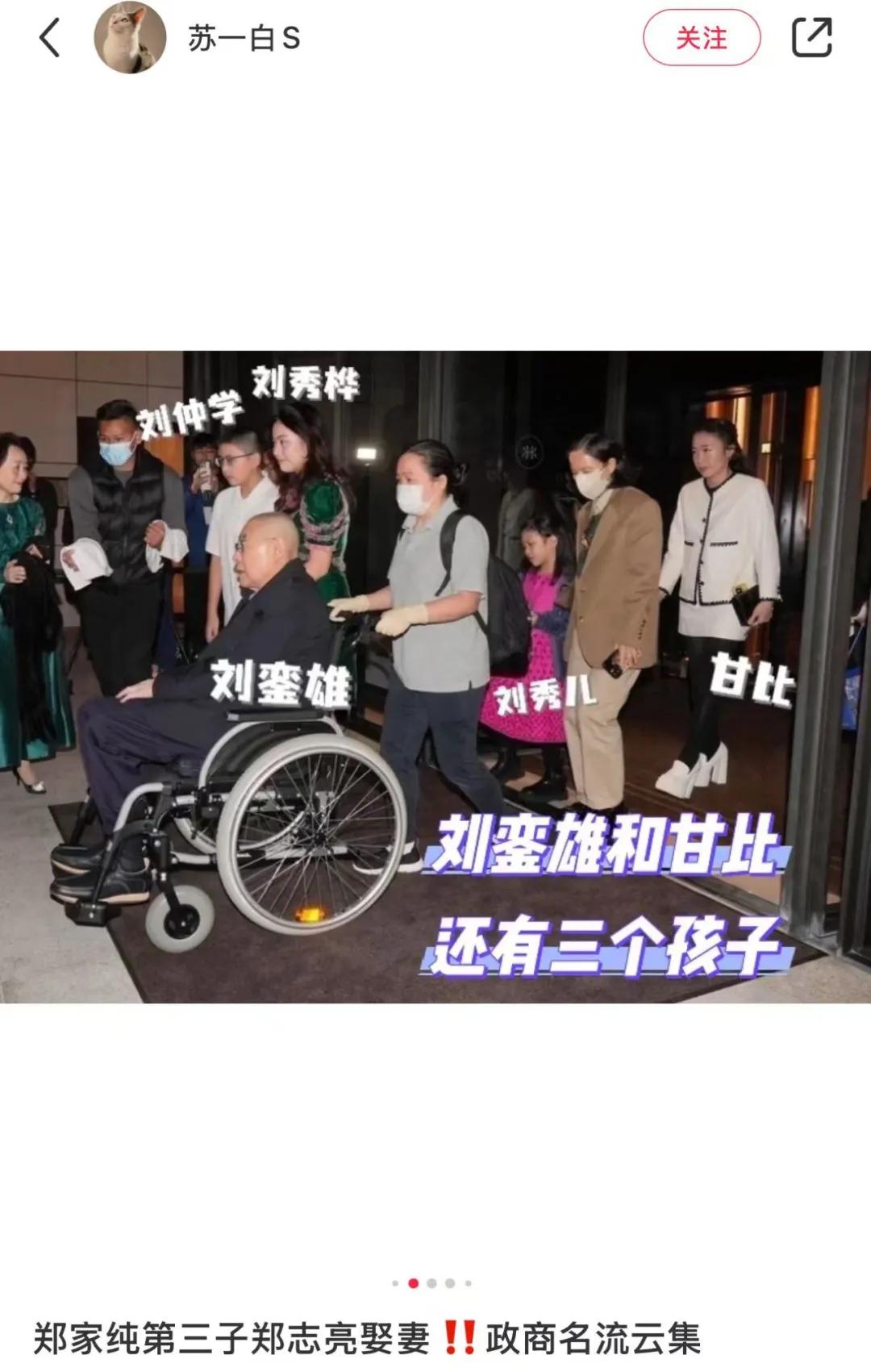 除了“修罗场”外,华人置业(0127.HK)创始人坐轮椅到场祝贺,妻子陈凯韵(甘比)和三个孩子陪伴左右。