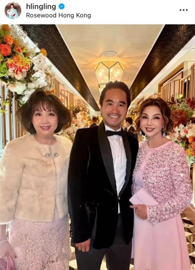 香港名媛谢玲玲在社交平台晒出与新人的合影