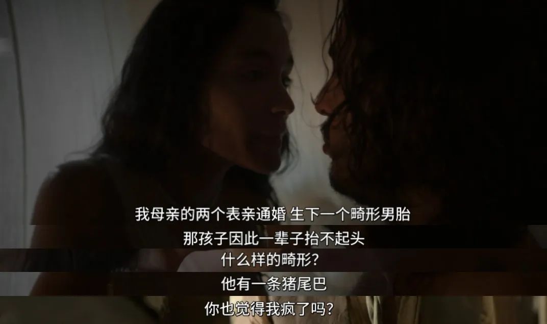 比如,这部剧开始提到的家族中表亲通婚,生下猪尾巴孩子的故事。