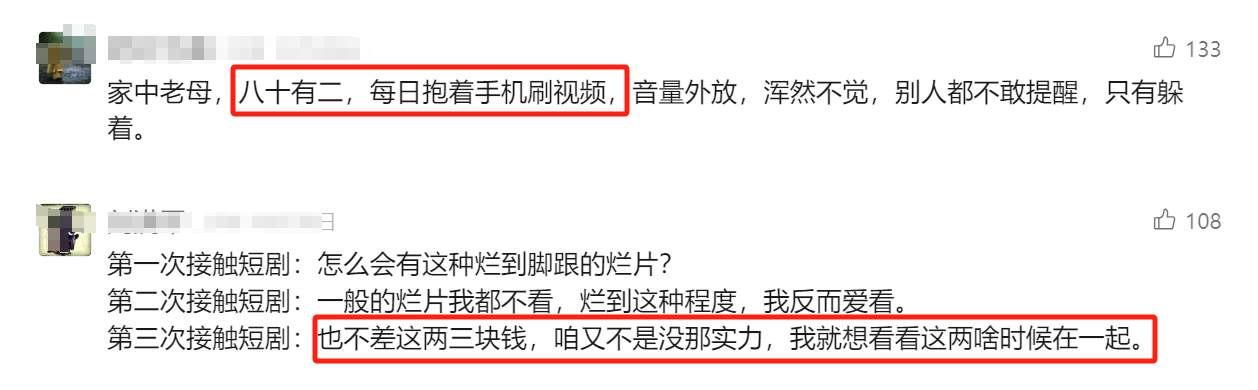 话说回来这个短剧的现象,其实也不怪中老年人们爱看,要是剧情拍得紧凑且有趣,年轻人都得来个充值看一回。
