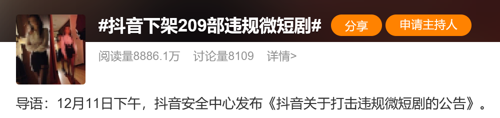 一大早,小雷就刷到了抖音下架209部微短剧的消息。