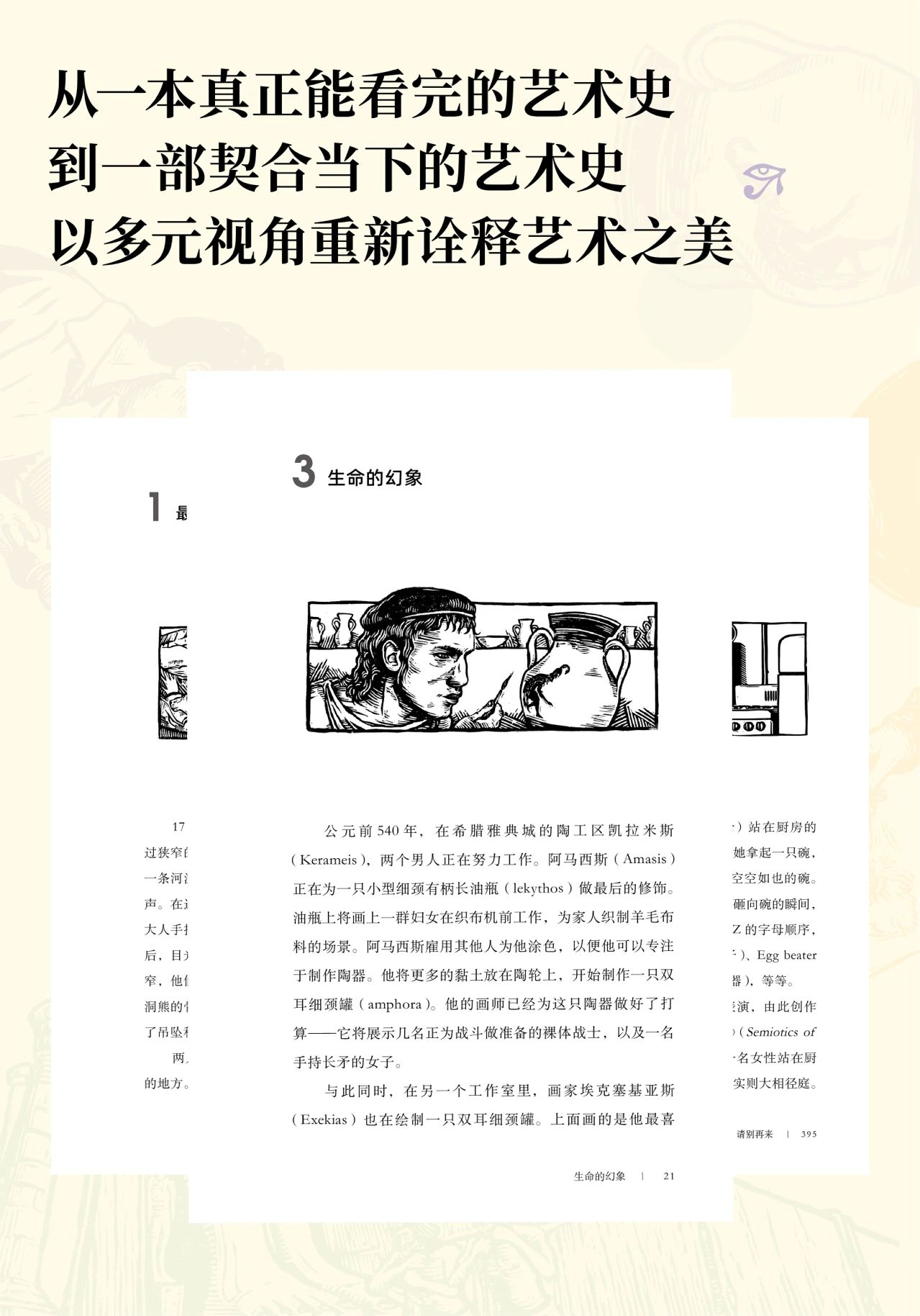 包罗万象、契合当下的艺术入门书——《艺术小史》以时间为轴,上至史前的颜料和动物画,下至近期的考古发现与艺界新趋势,涵盖绘画、版画、雕塑、摄影、摄像、行为艺术等各大艺术领域。