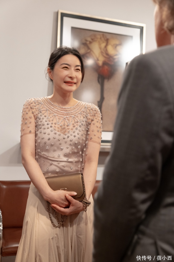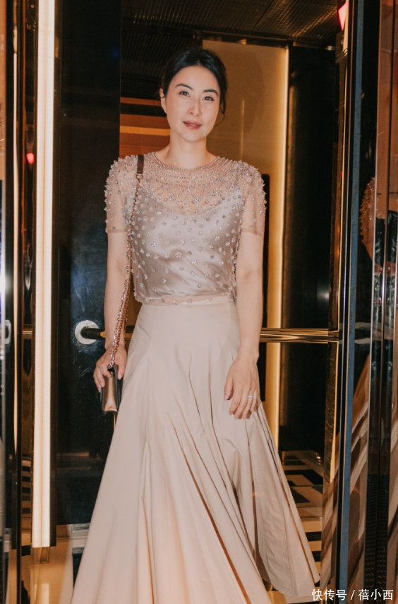 下半身的裙子和上衣虽然不是同一款,但裙子的垂感很好,面料看起来也很贴身舒适,如此温柔的香槟色裙子,直接就把松弛感给拉满了。同时蕾丝袖子的款式使得整体更加清爽、大方。适用场景包括高端晚宴、红地毯活动或重要的社交聚会,这样的装扮能够让她在任何场合中都成为焦点。