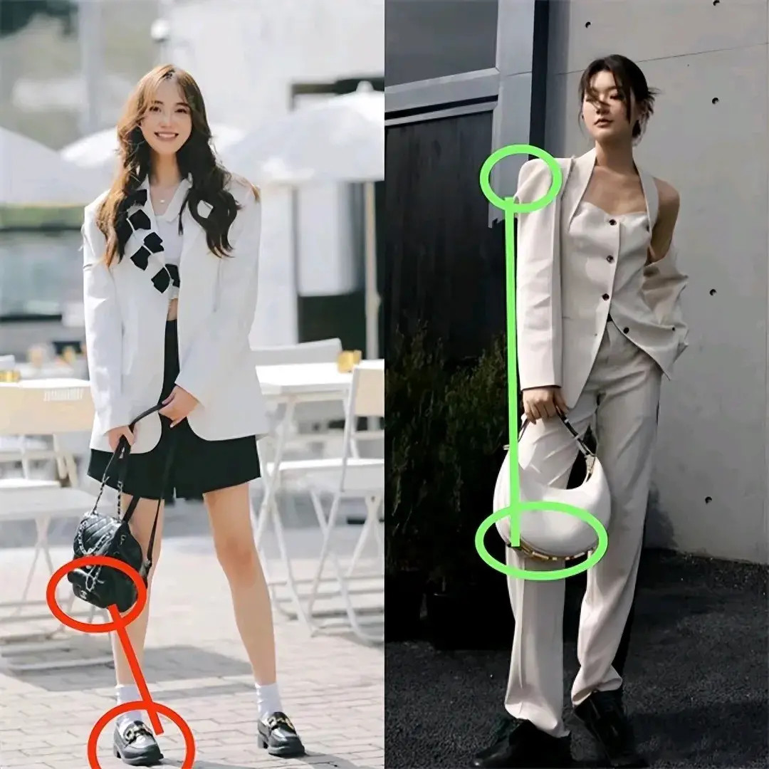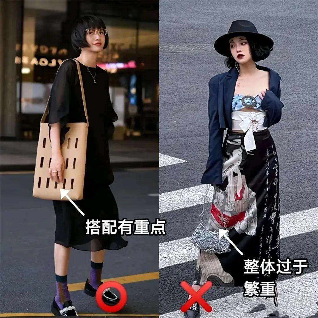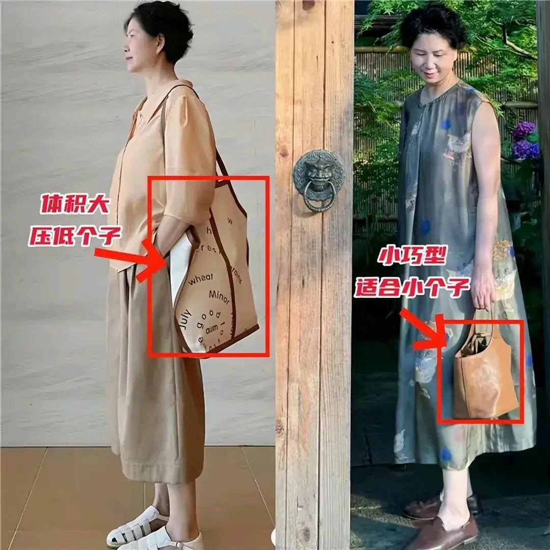 每一个人的高矮胖瘦不一样,选择的包包款式自然也不同,就不能选择花哨的款式,太繁琐的一般人驾驭不了,你看上面右边这张图片,包包的款式整体过于繁重,完全就没法突出重点。