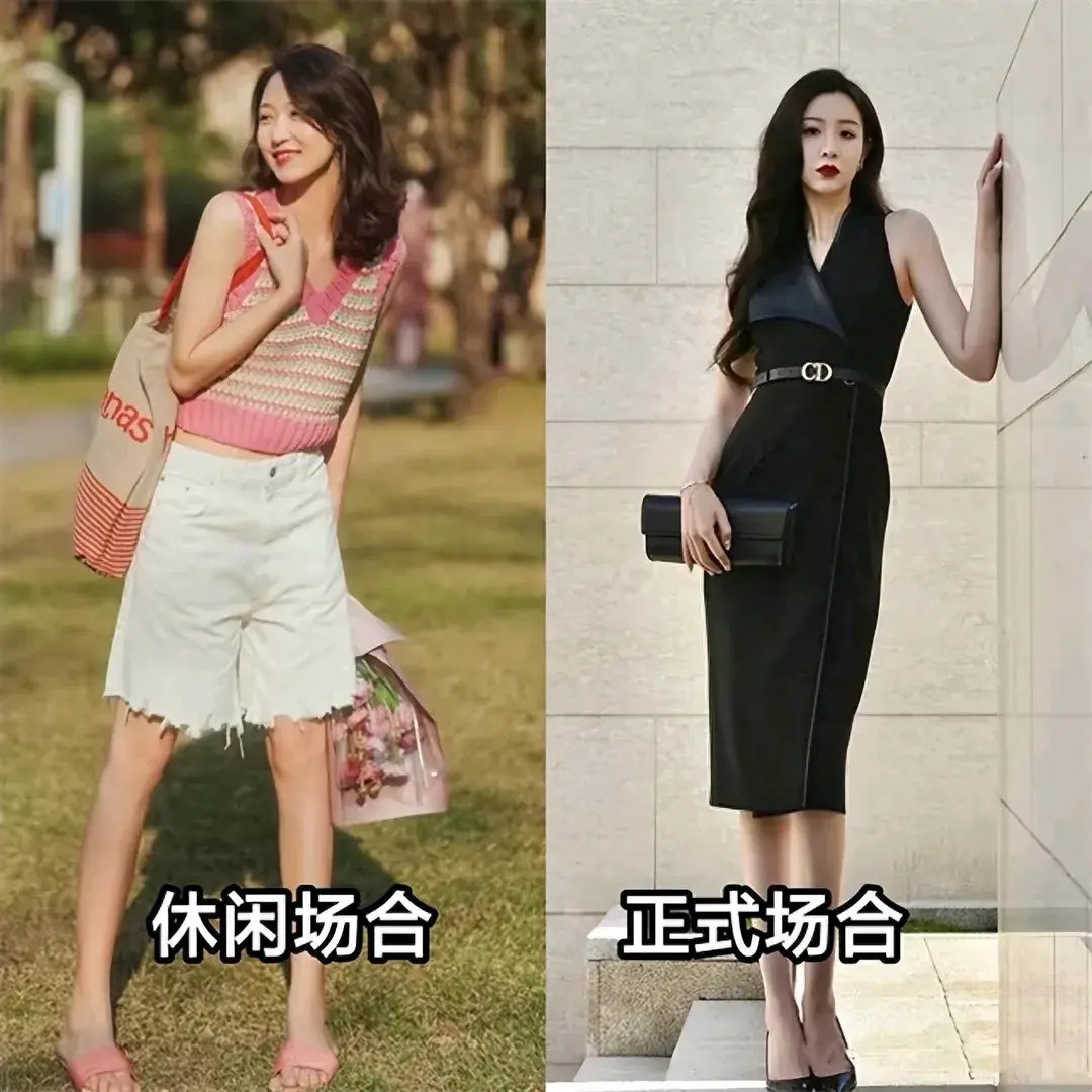 在正式场合的时候,选择的衣服也可能是比较正式感的版型,例如黑色的连衣裙搭配黑色高跟鞋,手里搭配的是黑色小方包,让你变得成熟又干练。
