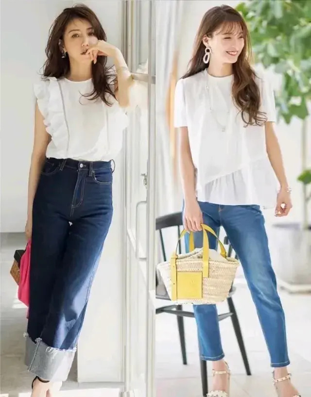 有的时候我们可以选择手提包,穿了一件白色的衬衫,搭配上牛仔裤,本身整套穿衣造型就很休闲,选择篮筐式手提包更合适,不过比较适合去逛街的时候进行搭配。