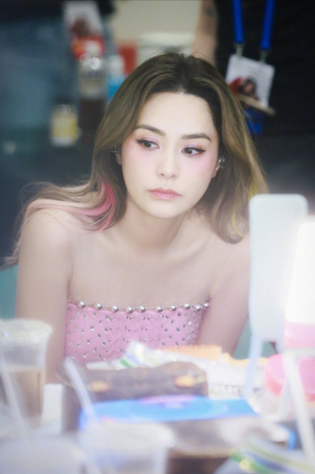 粉色作为一种温柔而甜美的色彩,能够很好地衬托出阿娇的温婉气质。而白色的加入则为整体造型增添了一抹清新与高雅,使得整个上装看起来既不过于甜腻,又不失女性的柔美与纯净。