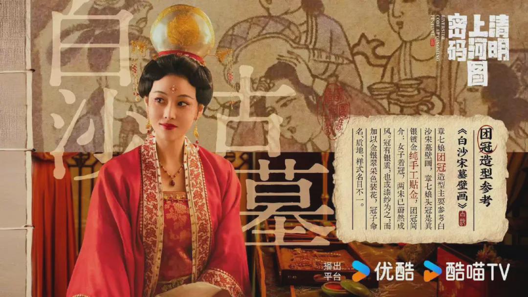 章七娘团冠可是真银镀金,纯手工贴金的,尽显章七娘东京富婆身份。